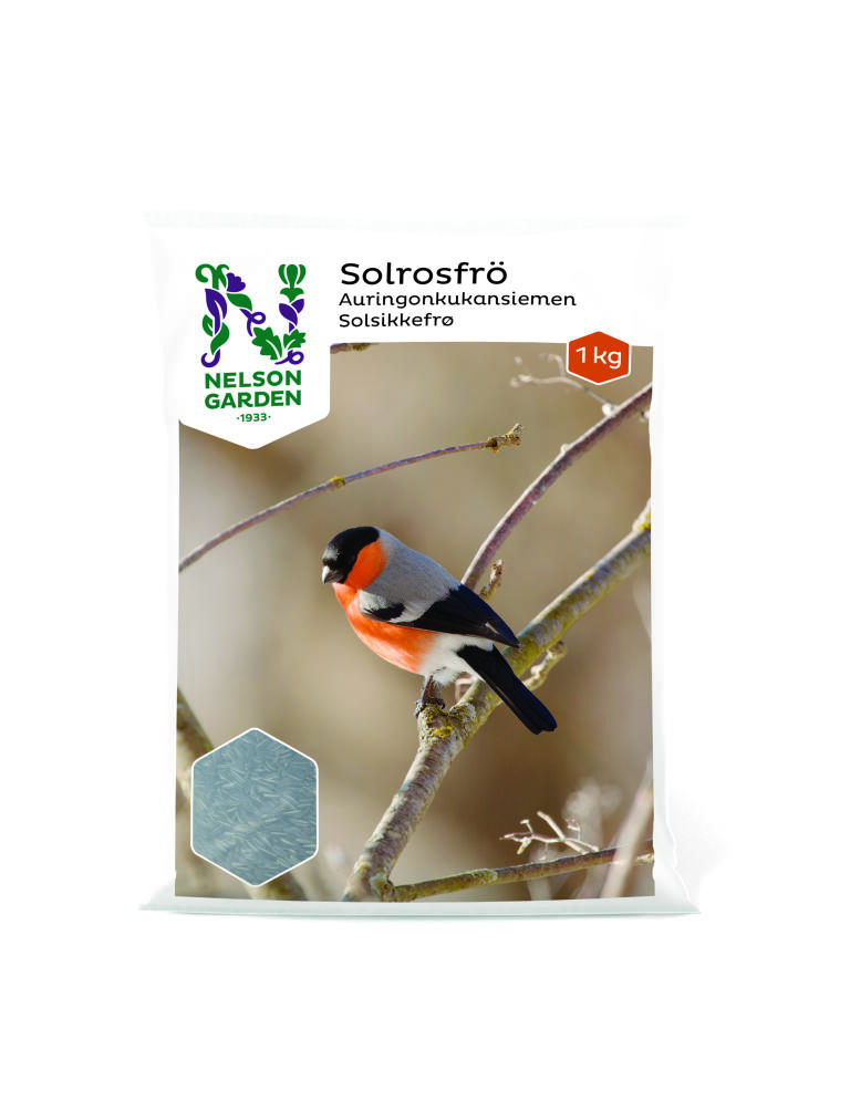Energiaa sisältäviä siemeniä villilintujen ulkoruokintaan. Pussi