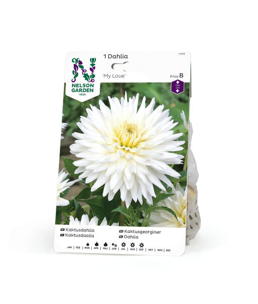 Puhtaan valkoinen, kaktuskukkainen daalia, jonka suuret, luonteenomaiset, sädehtivät kukat herättävät aina huomiota ja ihailua. Penkkiin tai ruukkuun, hyvä leikkokukka.