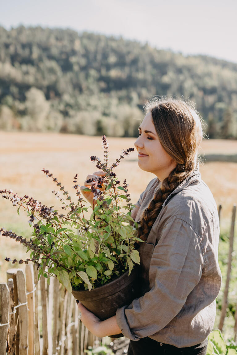 Luomulaatuinen siemen. Kanelintuoksuinen basilika, kauniit lehdet sopivat teehen, jälkiruokiin ja patoihin. Kukat ovat kauniita kimpussa. Sopii erityisesti ruukkuun, aurinkoon ja lämpimään. Poimi lehtiä vähän kerrallaan.