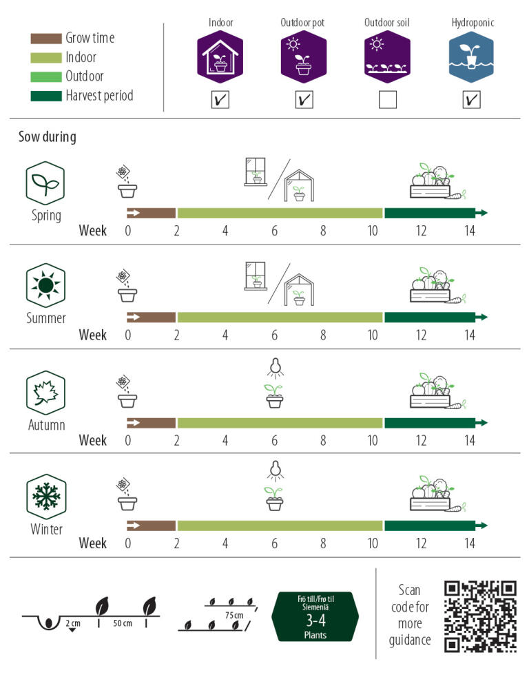 Tarkempaa tietoa kylvämisestä löytyy täältä tuotesivuilta, joille pääsee helposti pussiin merkityn QR-koodin avulla.