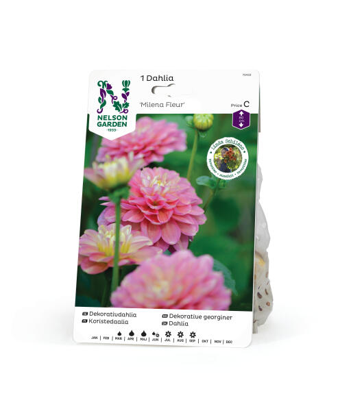 Koristedaalia, joka välkehtii kuin sen lehdille olisi ripoteltu glitteriä. Romanttiset sävyt lohenpunaisesta laventelinsiniseen sopivat hienosti valkoisten kukkien, tummalehtisten kasvien ja koristeruohon viereen. Kukkii runsaasti ja pitkään vahvojen varsiensa varassa.