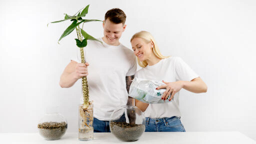 1. Ojitus: Peitä ruukun pohja leca-soralla, ennen kuin täytät ruukun mullalla.