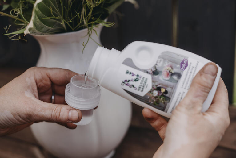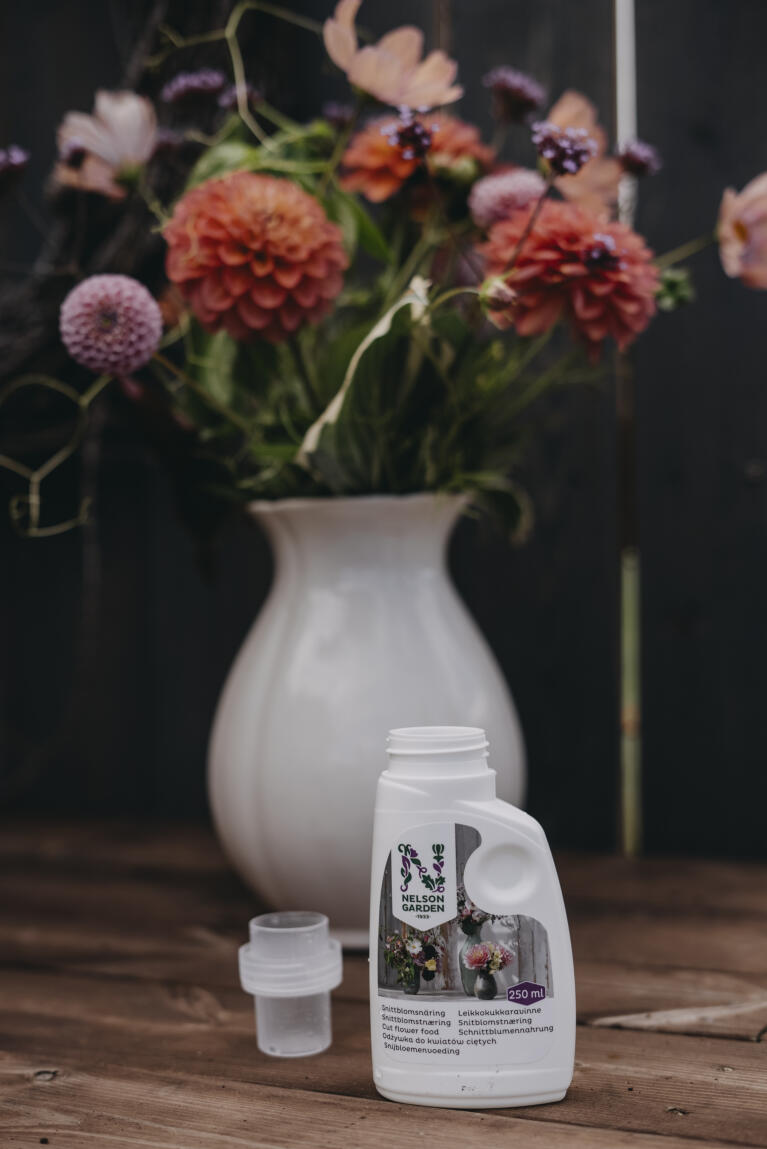Pidentää leikkokukkien kestävyyttä maljakossa. Liuos on väritön, se ei näy eikä värjää, pitää veden maljakossa raikkaana pidempään. Tiiviste.
