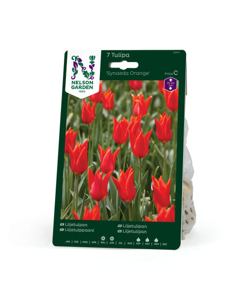 Oranssi liljatulppaani, joka loistaa kuin puutarhan oma aurinko, terälehtiensä keltaisten reunojen hohteessa! Kukkii myöhään, kylmänä keväänä jopa pitkälle kesäkuuhun.