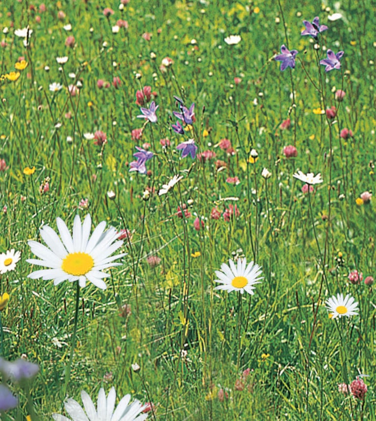 Seos perinteisiä niittykukkia, mm. apilaa ja ruiskaunokkia. Kukkien kasvupaikkavaatimuksissa on eroa, ja kullekin paikalle valikoituvat siinä viihtyvät kasvit. Loppukesällä kukat siementävät. Vältä lannoittamista.