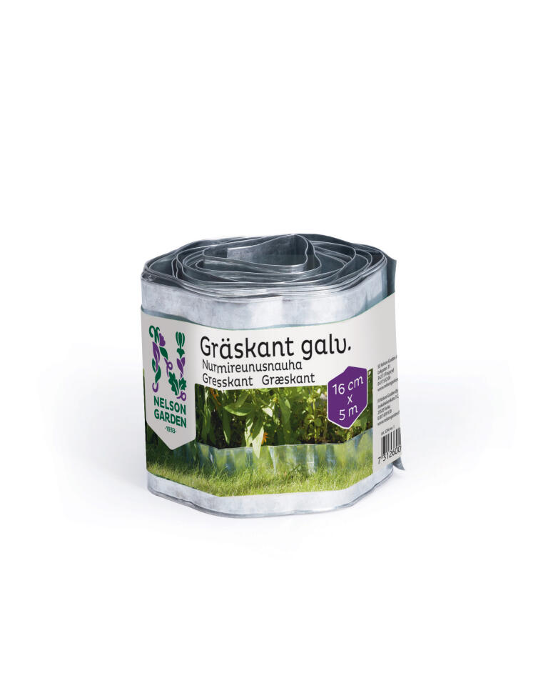 Galvanoidusta metallista valmistettu nurmireunus on sekä käytännöllinen että hyvännäköinen puutarhassa. Voidaan käyttää suoriin ja muotoiltuihin alueisiin, esimerkiksi kukkapenkkien rajaamiseen. 16 x 500 cm.
