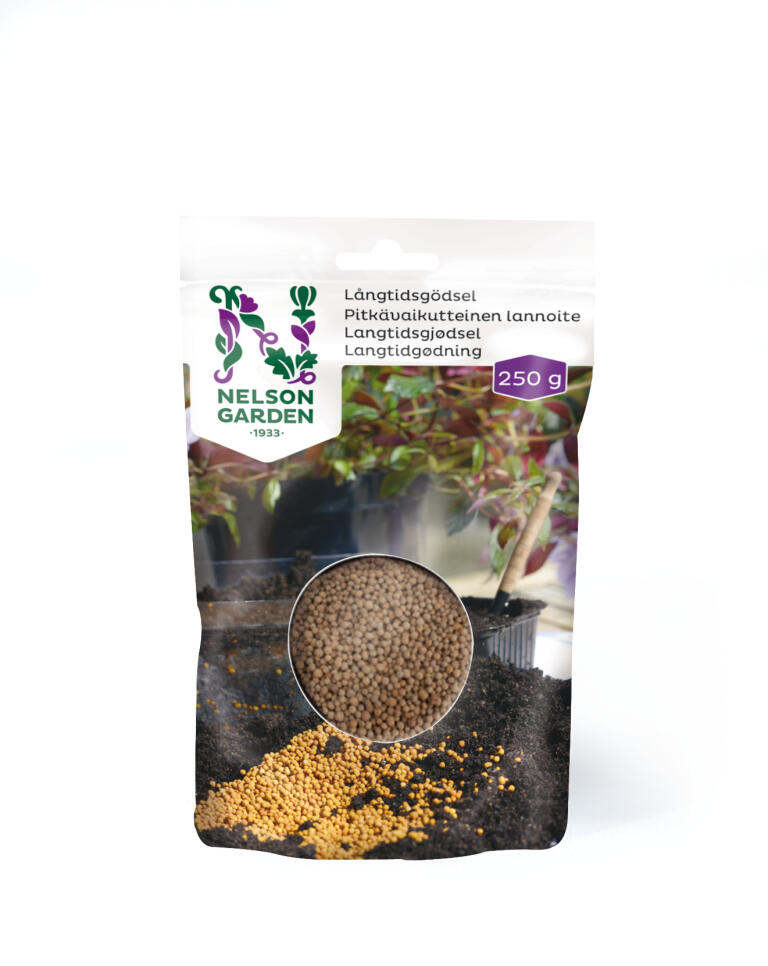 Ravinnerakeet, joista ravinteet vapautuvat kosteuden ja lämmön avulla. 1 lannoituskerta/kasvukausi. NPK 15-3-13