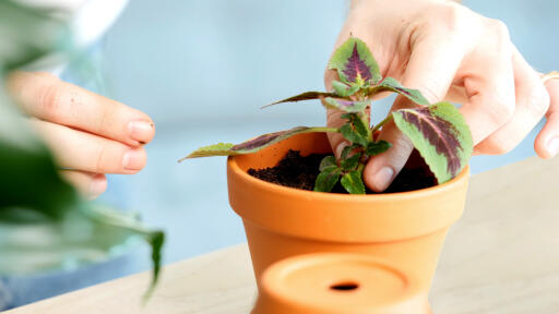 2. Pistokkaiden uudelleenistutus: Täytä ruukku mullalla ja aseta pistokas samaan syvyyteen kuin aiemminkin tai 5–10 cm syvyyteen tai ensimmäisen lehtiparin korkeudelle. Tasoita multaa kevyesti varren ympäriltä ja kastele. Asettele esim. muovipussi ruukun ylle niin, että saat aikaan pienoiskasvihuonetta muistuttavat olosuhteet ja aseta ruukku valoisaan paikkaan.