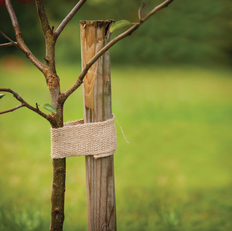 Leveä juuttinauha on kaunis ja hellävarainen ratkaisu kasvien suojaamiseen. Sido sitä yhdessä villan kanssa kasvien ympärille, jotta ne ovat hyvin suojassa. Kuuden sentin levyinen nauha tekee sidoksesta tukevan ja luotettavan.
