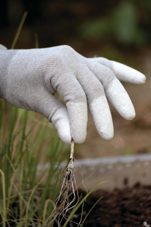 Ohut ja taipuisa käsine tarkkuutta vaativaan, kevyempään puutarhatyöhön. Sopii vihannesten ja kukkien keräämiseen. Nailonia ja hiilikuitua, kastettu polyuretaaniin (PU).