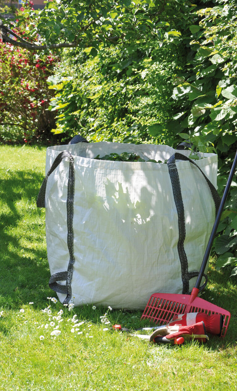 Kestävästä materiaalista valmistettu puutarhasäkki kevyelle ja painavalle jätteelle. Täytä säkki esimerkiksi lehdillä, risuilla ja kivillä. Helppo kantaa ja tyhjentää.