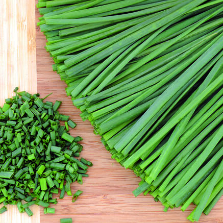 Ruohosipulin kapeissa lehdissä on mieto sipulinmaku. Pyöreät, lilanväriset kukat. Korjaa lehtiä vähitellen. Myös kukat voi syödä.
