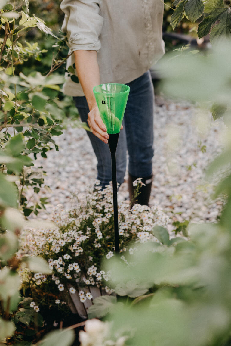 Tarkkaile sademäärää perinteisen sademittarin avulla. Cone-sademittari on 80 cm korkea ja hauska lisä puutarhaasi. Se mittaa sademäärää aina 50 mm asti.