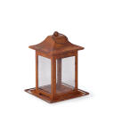 Tyylikäs siemenautomaatti, somistuselementti puutarhaan. Kiinnitysrengas ruuvataan irti, kun automaatti on tarkoitus täyttää. Istumapaikkoja ympärillä. Peltiä, seinät kestävää pleksiä.