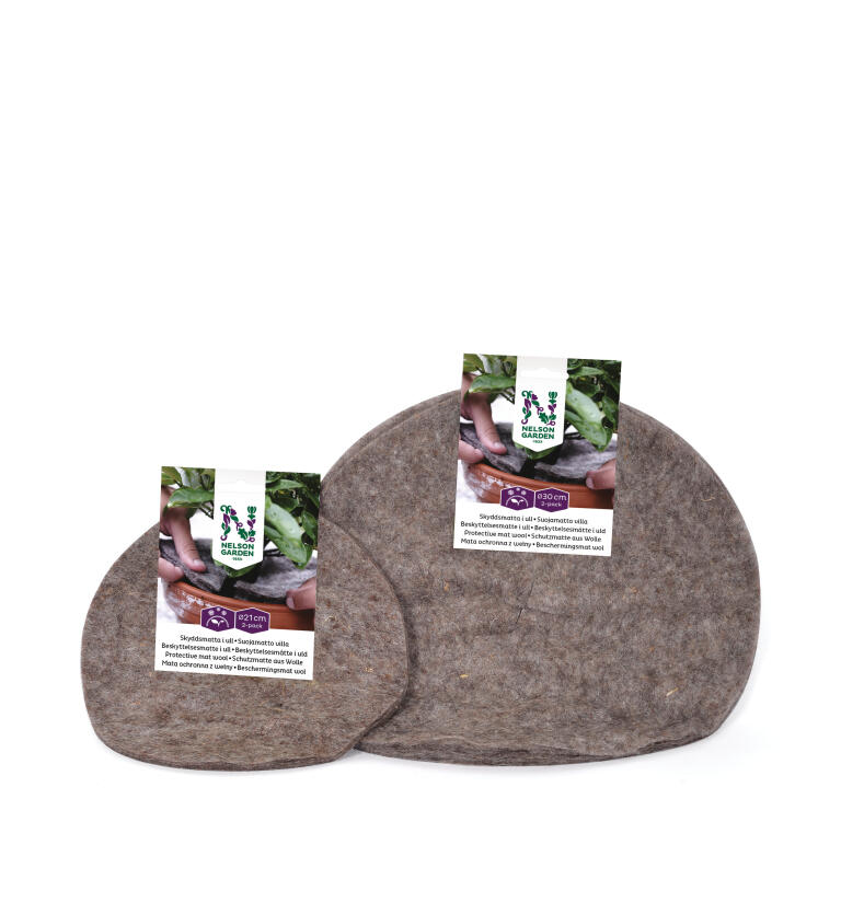 Tämä 100 % luonnonvillasta valmistettu suojamatto on monipuolinen ratkaisu sekä ruukkukasveille että kukkapenkki-istutuksille. Se estää tehokkaasti kasveja kuivumasta ja suojaa niitä rikkaruohoilta. Lisäksi, matto toimii suojakerroksena kylmyyttä vastaan niin ala- kuin yläpuoleltakin. Suojamaton voi asettaa mullan pinnalle kosteuden säilyttämiseksi tai ruukun alle suojaamaan kylmältä. Maton halkaisija on 21 cm, joten se voidaan leikata halutun kokoiseksi. Pakkaus sisältää 2 kpl.
