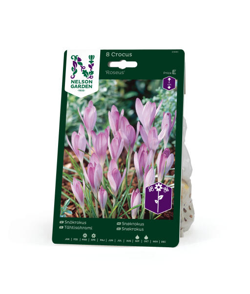 Lumikrookus on eräs varhaisimmista krookuksista. Anna villiintyä nurmikolla tai kukkapenkissä muiden aikaisten lajikkeiden kanssa. Sopii myös ruukkuun. 'Roseus'-lajikkeen terälehdissä on kaunis syklaamiroosan värisävy ja hopeanharmaat ulkoreunat.