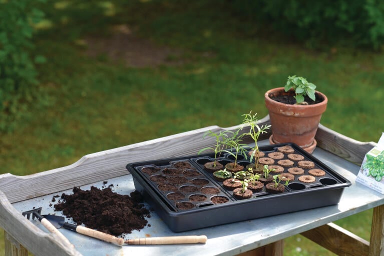 Taimikasvatuslaatikko ja kennostot voi täyttää mullalla tai kapseleilla. Helpottaa kylvöä, esikasvatusta ja koulintaa. Laatikko polypropeenia (PP, kierrätysmateriaalia), kennostot polystyreeniä (PS). Sis. 14 kylvökapselia kompostoitavaa kookoskuitua, turvetta ja ravinteita. 23 x 37 cm