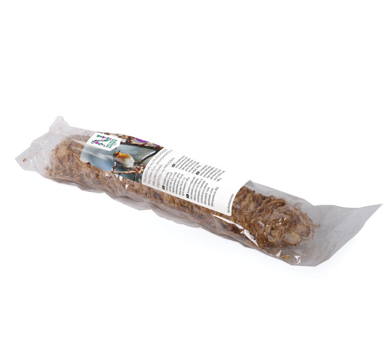 Runsaasti energiaa sisältävä talitanko jauhomadoista, viljasta ja siemenistä. Rasva- ja proteiinipitoinen linnunruoka on leivottu kompostoitavan tikun ympärille. Valmis ripustettavaksi narusta. 100% luonnontuote. 400g