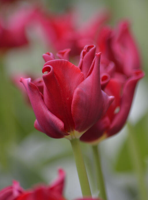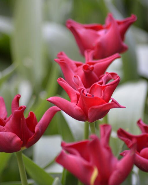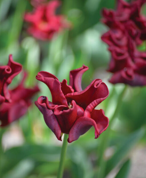 Punainen kapinallinen – tämä tyylikäs triumftulppaani on aivan erityislaatuinen kukkapenkissä kruunumaisten terälehtiensä ansiosta.