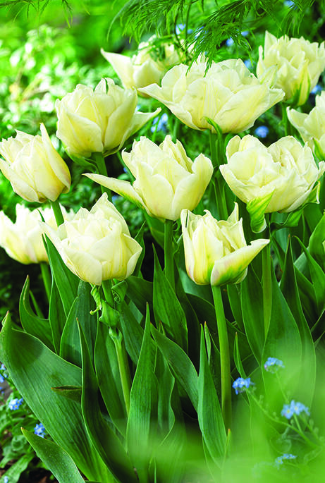 Sopiva lajike sinulle, joka haluat herättää huomiota ympäristössäsi. Suurten ja täyteläisten valkoisten kukkien terälehtien ulkoreunassa on kullanvihreitä juovia. Sopii todella hyvin kukkapenkkiin ja ruukkuun. Erittäin hyvä leikkokukka.