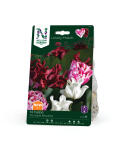Satumainen yhdistelmä vaaleanpunaista, punaista ja valkoista – kaunottaret 'Dazzling Desire', 'Red Dress' ja 'White Liberstar' muodostavat upean kimpun.