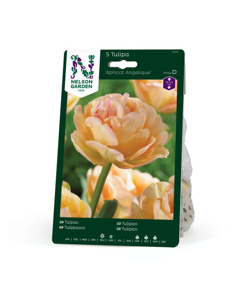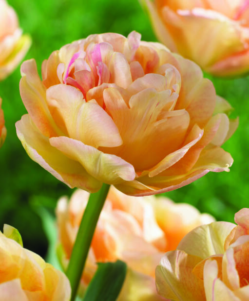 Enkelimäisen kaunis, sanoinkuvaamattoman pehmeät sävyt. Tulppaani, jonka runsaissa terälehdissä on aprikoosia, vaaleanpunaista, mandariininkeltaista ja kermanvaaleaa. Upeasti sointuva taideteos kukkapenkkiin.