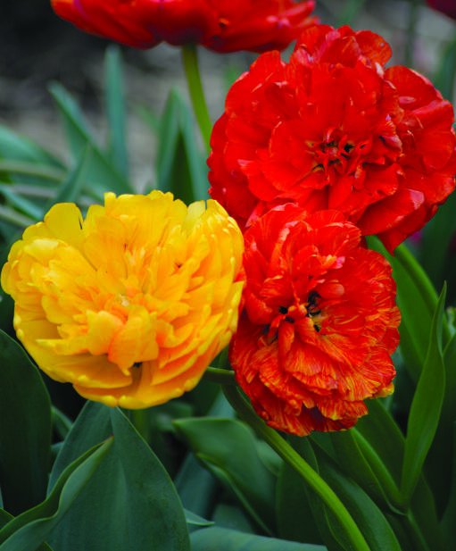 Näyttävä tulppaani, joka avautuu pionin tavoin vähän kerrassaan. Väri taittuu kullankeltaisesta oranssiksi ja oranssinpunaiseksi. Tukeva ja tuoksuva väriläiskä kukkapenkkiin kevään viimeisiksi viikoiksi.