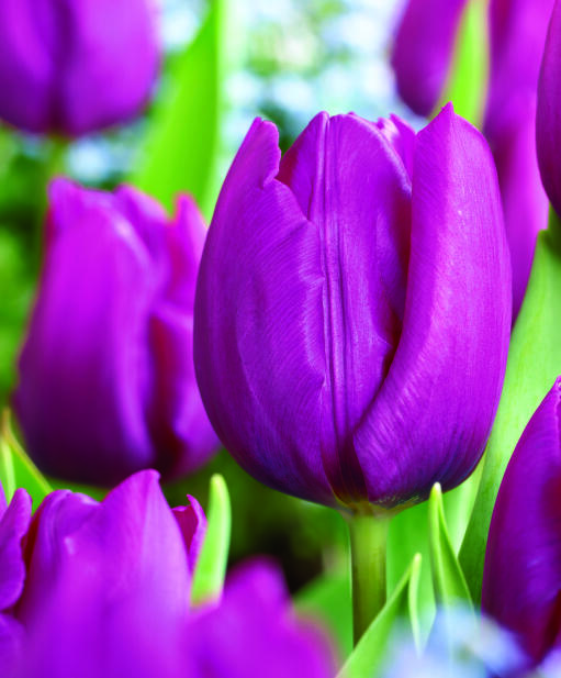 Klassinen tulppaani. Elegantti purppuranpunainen kukka nousee korkealle vahvan varren varassa - oikea ilontuoja!