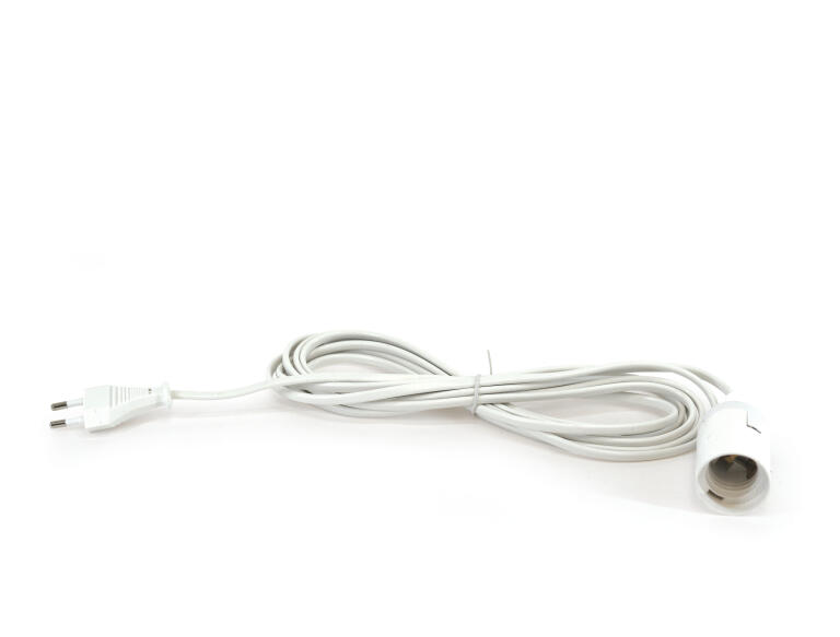 Maadoittamaton valaisinjohto. Käyttövalmis. Valaisin ei sisälly tuotteeseen. Valkoinen, pit. 4m, E27-kanta.