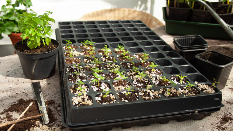 Kun kylvät valossa itäviä siemeniä, täytä ruukku mullalla, kylvä siemenet ja peitä ne vermikuliitilla. Näin siemenet saavat valoa, mutta eivät kuivu yhtä nopeasti.