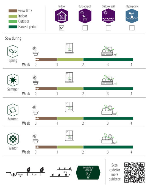 Tarkempaa tietoa kylvämisestä löytyy täältä tuotesivuilta, joille pääsee helposti pussiin merkityn QR-koodin avulla.